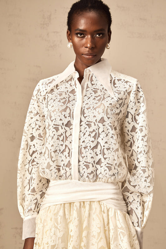 Bernadette off-white floral-lace mini shirt dress (US Only)
