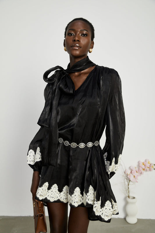 Delphine faux-pearl embellished mini dress in Black (US Only)