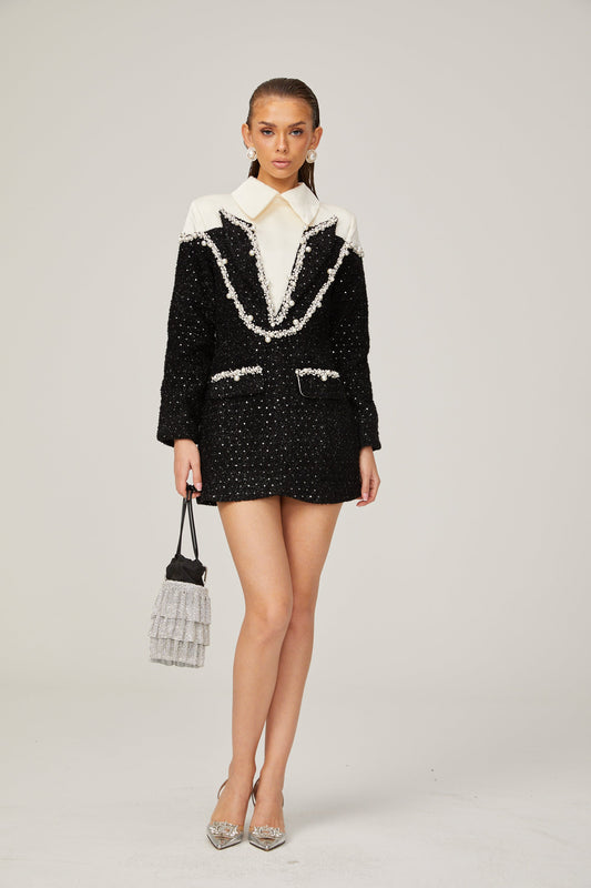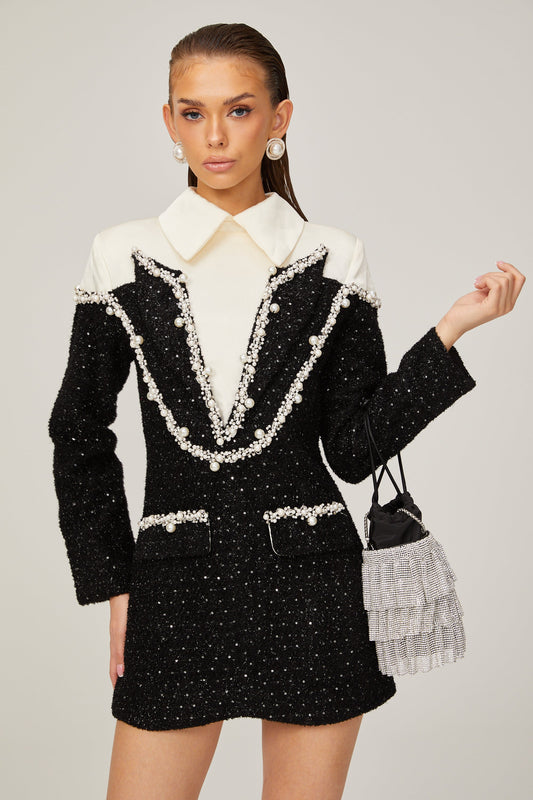 Éléonore faux-pearl tweed mini dress