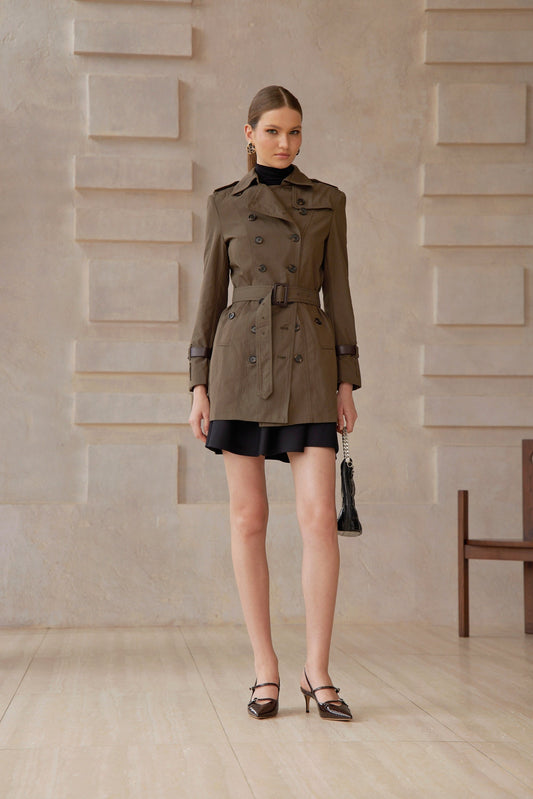 Iris Army Green Belted Double-Breasted Trench Coat