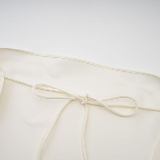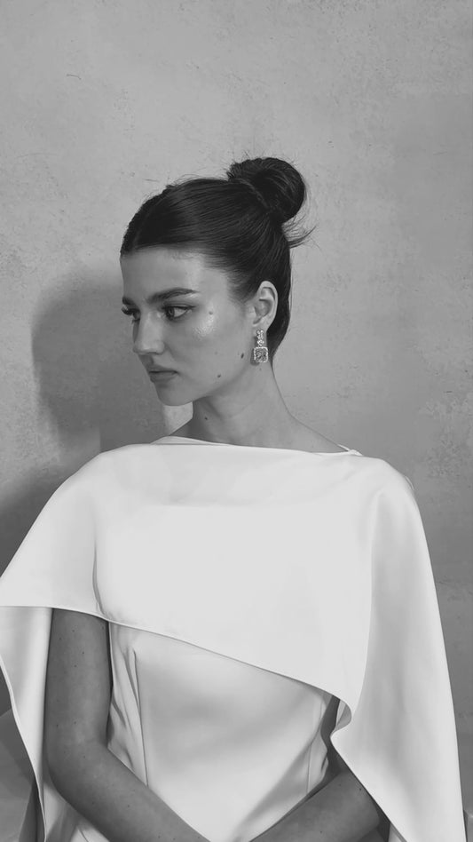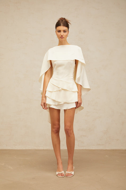 Lyna White Satin Ruffled Mini Dress with Shawl Panel Detail