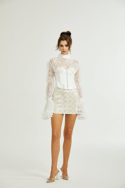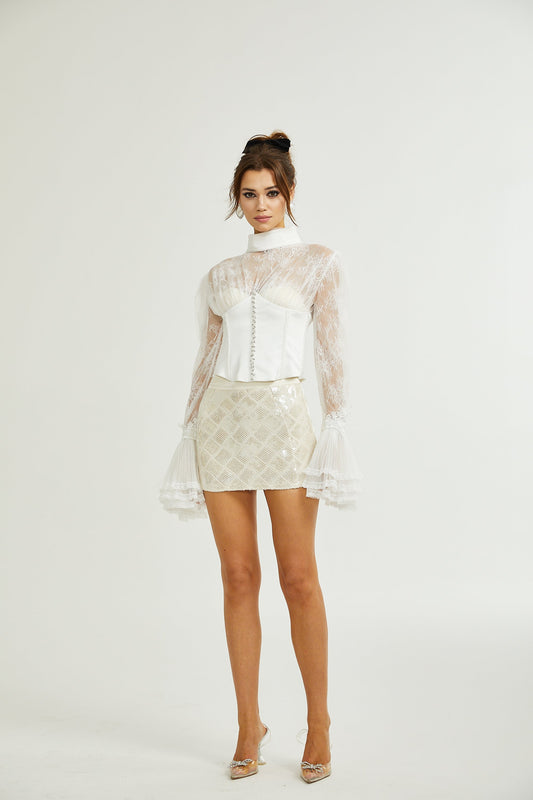 Ellica yarı şeffaf kısa üst (Sadece ABD)